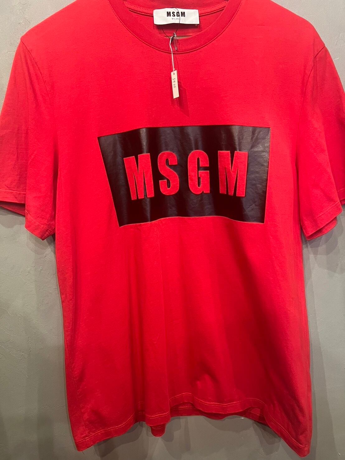 MSGMロゴTシャツ レッド Mサイズ 縫い傷あり